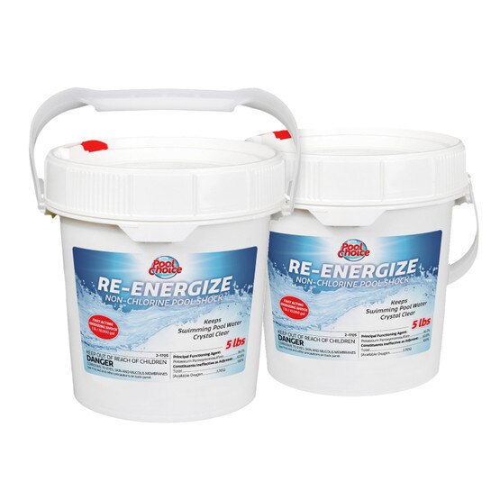 Pool Choice Re-Energize is an extremely powerful long-lasting oxidizer, perfect for weekly maintenance and pools with heavy bather loads. Pool Choice Re-Emergize Shock is popular because swimmers can use the pool immediately after its use. This product will not affect pH or chlorine levels while destroying organic contaminants and chloramines and eliminating chlorine odors. Compatible with bromine and chlorine.