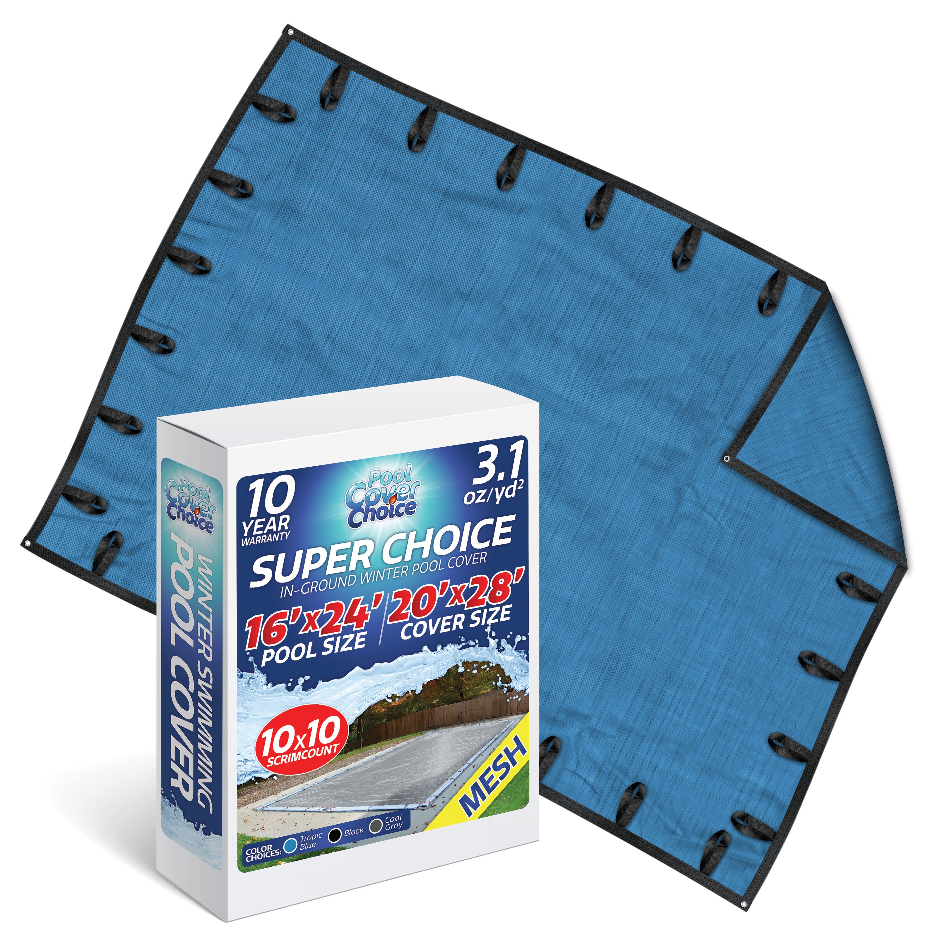 Pool Cover Choice Super Choice Mesh Winter Cover 16' x 24' In-Ground Pool Size - Tropic Blue