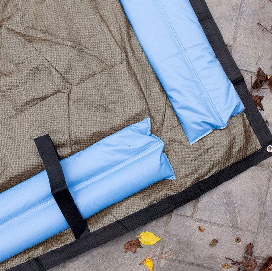 Protect your in-ground swimming pool with the Pool Cover Choice Premium Choice Mesh winter pool cover. Unsealed mesh material allows water to pass through the cover, eliminating the need for a cover pump. The polyethylene material is constructed with a 12x12 scrim (threads per square inch). Covers with a higher scrim will have a better overall quality, strength, and durability. The material weighs 3.7 ounces per square yard which is important because heavier covers will be affected less by extreme elements. The cover has been treated to inhibit UV rays and blocks nearly all the sunlight that would otherwise enter the pool. This cover has an additional five foot overlap to ensure space for water bags on the deck and slack in the cover. A 2 inch marine-grade nylon binding boarders the entire cover providing enhanced protection from wear and tear. Water bag loops made of the same nylon binding are placed every four feet around the perimeter of the cover. The Pool Cover Choice Premium Choice Mesh comes in multiple colors (depending on pool size and availability) and is covered by a fifteen-year warranty.