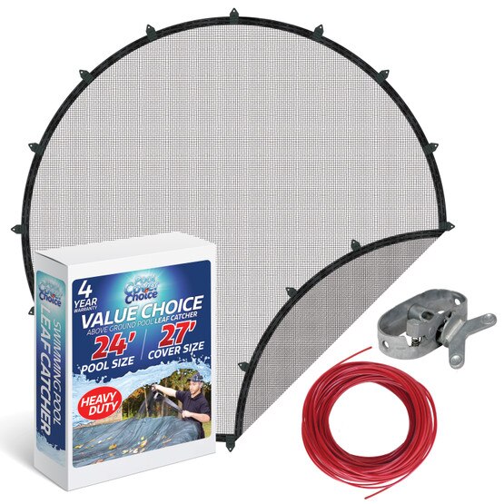 Pool Cover Choice Value Choice Leaf Nets are the easiest way to remove leaves and debris from your pool cover. This lightweight yet durable netting sits on top of your pool cover to make disposing of leaves as easy as possible. It has a 3-ft overlap, allowing the cover to be used on above ground pools with top rails up to 6 inches wide. There are tabs approximately every 4 feet for use with the included cable and winch. All Pool Cover Choice Value Choice Leaf Nets come with a 4-year pro-rated warranty.Warning: The cable included in this product can expose you to Di(2-ethylhexyl)phthalate (DEHP), a chemical which is known to the State of California to cause cancer, birth defects or other reproductive harm. For more information go to www.P65Warnings.ca.govThe winch included in this product can expose you to lead, a chemical which is known to the State of California to cause cancer, birth defects or other reproductive harm. For more information go to www.P65Warnings.ca.gov