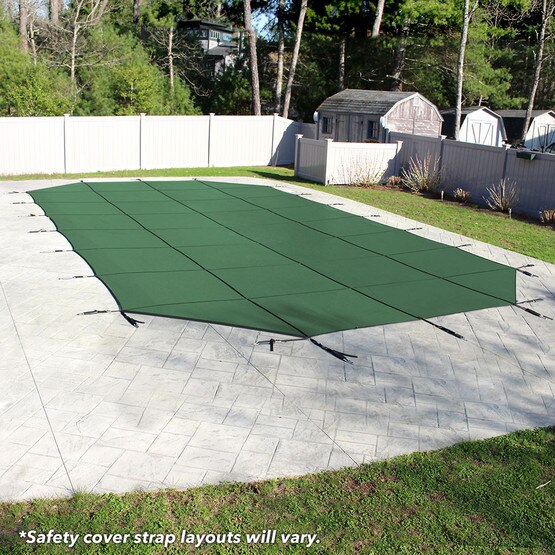 The Yard Guard Aquamaster is a lightweight solid safety cover that is up to 50% lighter than conventional vinyl solid covers but is also up to 70% stronger. This tough, non-porous material blocks sunlight and helps prohibit algae growth, plus the durable coating will not fade or stain. Safety covers are a premium option for swimming pool owners who are looking for a great looking product that will keep unwanted intruders from entering their swimming pool. Yard Guard safety covers are manufactured with the highest standards in the industry and are designed to keep your pool safe and clean. This cover is reinforced with extra heavy-duty webbing along the top and bottom of every seam. Unlike other safety covers, which feature webbing on only one side of the cover, Yard Guard's webbing on both sides increases the strength of the cover by double. Rub strips are placed where the strapping would go over the coping to prevent wear and tear. Marine-grade heavy-duty white triple line stitching is used to secure all straps with cross and box tack at all perimeter stress points. All Yard Guard covers are manufactured using the most modern equipment, including a computerized cutting and shaping system. All covers, throughout every stage of production, are quality checked and signed for before final packaging. The hardware included with this cover is prepackaged in individual poly bags, each containing a brass plug, brass screw, spring, buckle, and vinyl sleeve.