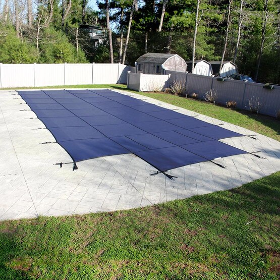 The Yard Guard Aquamaster is a lightweight solid safety cover that is up to 50% lighter than conventional vinyl solid covers but is also up to 70% stronger. This tough, non-porous material blocks sunlight and helps prohibit algae growth, plus the durable coating will not fade or stain. Safety covers are a premium option for swimming pool owners who are looking for a great looking product that will keep unwanted intruders from entering their swimming pool. Yard Guard safety covers are manufactured with the highest standards in the industry and are designed to keep your pool safe and clean. This cover is reinforced with extra heavy-duty webbing along the top and bottom of every seam. Unlike other safety covers, which feature webbing on only one side of the cover, Yard Guard's webbing on both sides increases the strength of the cover by double. Rub strips are placed where the strapping would go over the coping to prevent wear and tear. Marine-grade heavy-duty white triple line stitching is used to secure all straps with cross and box tack at all perimeter stress points. All Yard Guard covers are manufactured using the most modern equipment, including a computerized cutting and shaping system. All covers, throughout every stage of production, are quality checked and signed for before(more...)